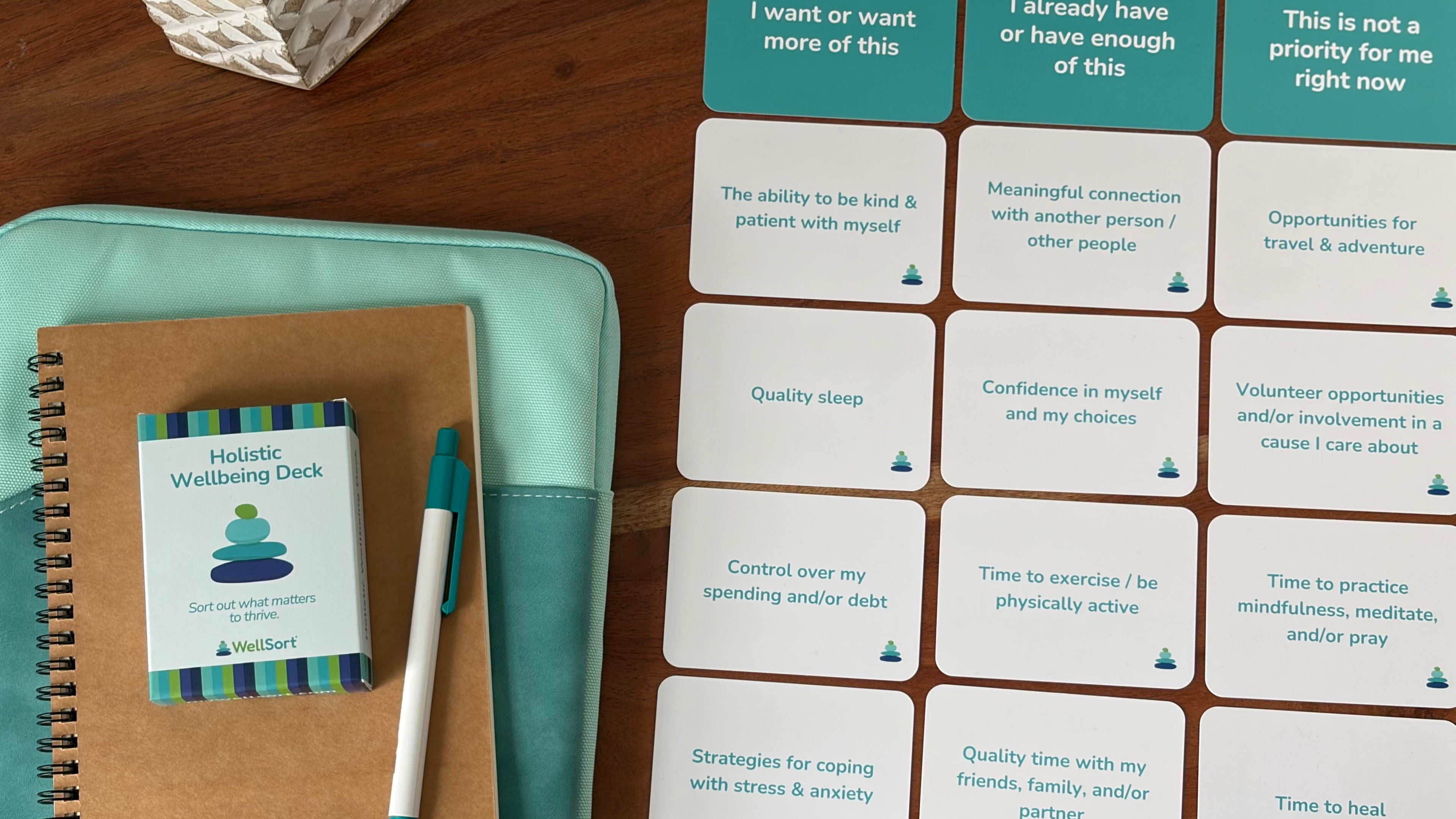 Real wellbeing means looking at the whole picture. Our card sorts use the Eight Dimensions of Wellbeing to help you understand what's important across all areas of your life - so you can act on what matters most.