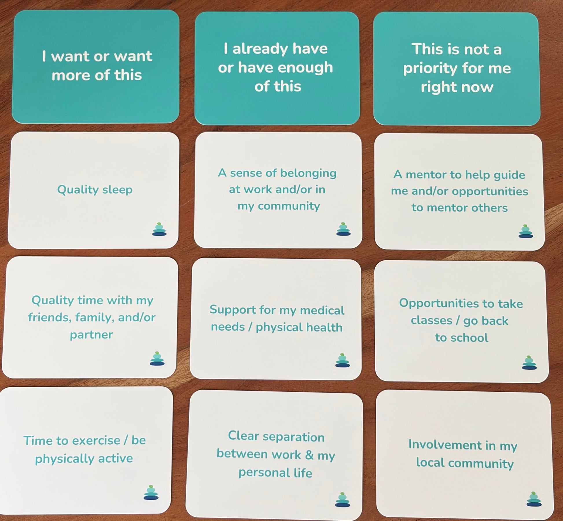 Developed by a licensed professional counselor, this card sort gives you a clear starting point when everything feels like a priority. Whether you're juggling work and family, feeling burned out, or simply ready to take better care of yourself, this tool helps you focus on what will truly move the needle.